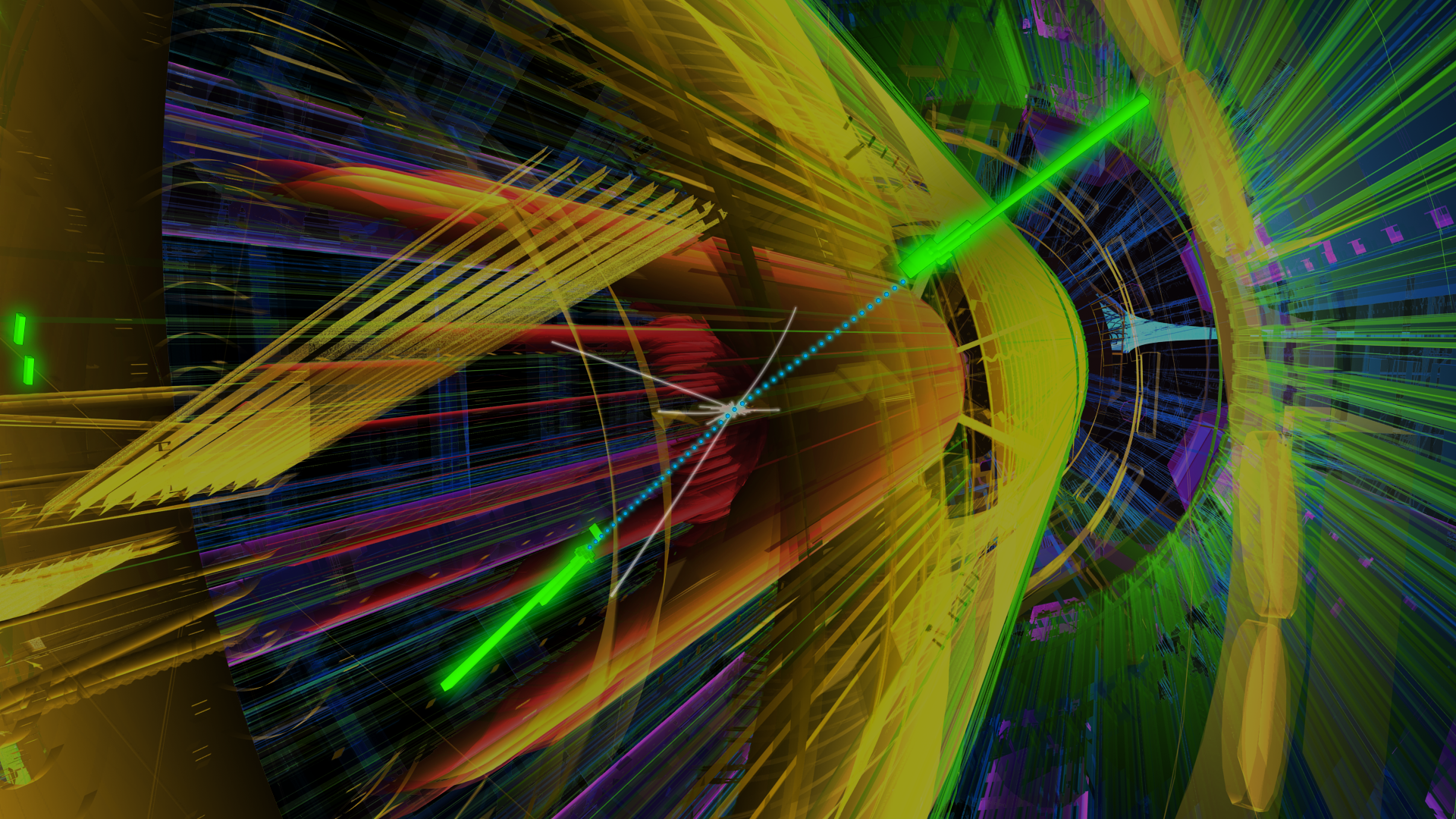 The Large Hadron Collider (LHC) collides bunches of protons, each containing up to 1011 protons, together. Physicists are trying to identify whether Higgs bosons are produced in these collisions. It is predicted that one in every hundred million (108) of these collisions will produce a Higgs boson. Physicists search for the distinctive signature of the Higgs boson as it decays into other particles.