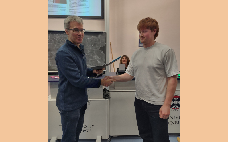 The School has a number of Prizes and Scholarships to award, including a prize for the year 5 student with the highest classification on the Astrophysics MPhys programme, a prize for the year 4 student with the best Senior Honours poster, and a prize for the student who has produced the best Summer Scholarship Poster. A total of 25 Prizes and Scholarships were awarded to the undergraduate students who achieved outstanding results in their subject area or year.