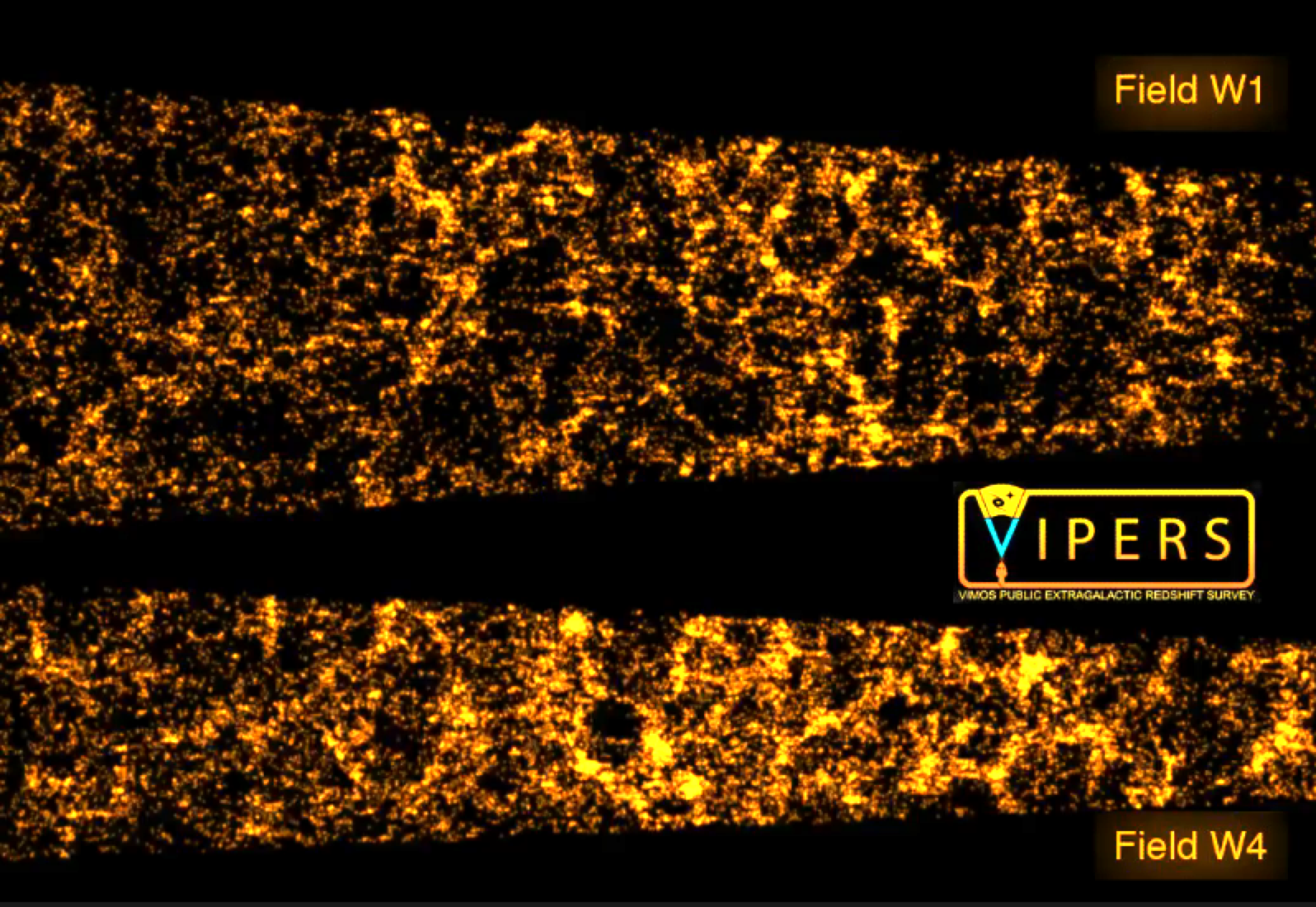 An international team of astronomers, including members of the University of Edinburgh, has used the VIMOS instrument on the ESO Very Large Telescope to measure the distances to 55,000 galaxies [1] as part of the VIPERS survey [2]. This has already allowed them to create a remarkable three-dimensional view of how galaxies were distributed in space in the younger Universe. This reveals the complex web of the large-scale structure of the Universe in great detail.