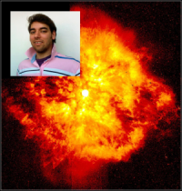 The Edinburgh Nuclear Physics Group is internationally renowned for its work on explosive nuclear astrophysical reactions, and in particular on its links with the properties of unstable (sometimes known as exotic) nuclei. In an experimental work led by Gavin Lotay, as part of his PhD Thesis work, and Professor Woods, performed at Argonne National Laboratory, Chicago, USA the world leading Gammasphere array was used to identify key low lying resonances for the first time, thereby reducing uncertainties in the nuclear reaction rates affecting production of the cosmic γ-ray emitter 26Al by nearly a factor of a million! These results clearly demonstrate that low energy reactions on massive Wolf-Rayet stars, and the subsequent flow of material into the cosmos from stellar winds, is the most likely source of the majority of the 26Al material observed in satellite missions. This was reported in the prestigious journal Physical Review Letters [1], the image shows Gavin Lotay and a Wolf-Rayet star in the background.
